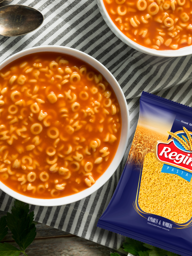 3 3- Add the alphabet and numbers pasta and cook according to package instructions.